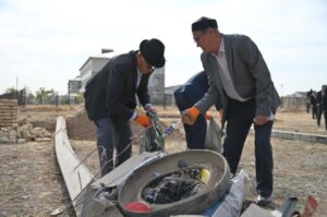 На улицах Гун елі, Кеме калган, Алтын адам и в зоне отдыха Шым Сая проведена очистка общественных территорий, тротуаров и зеленых зон. Привлечены жители микрорайона, сотрудники различных учреждений и 12 единиц спецтехники.