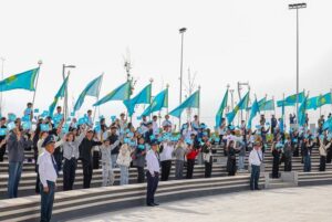 Церемония началась с исполнения Государственного гимна Республики Казахстан. В этот момент голубое знамя — символ свободы и мира — величественно взмыло над площадью, олицетворяя силу и сплочённость казахстанского народа.