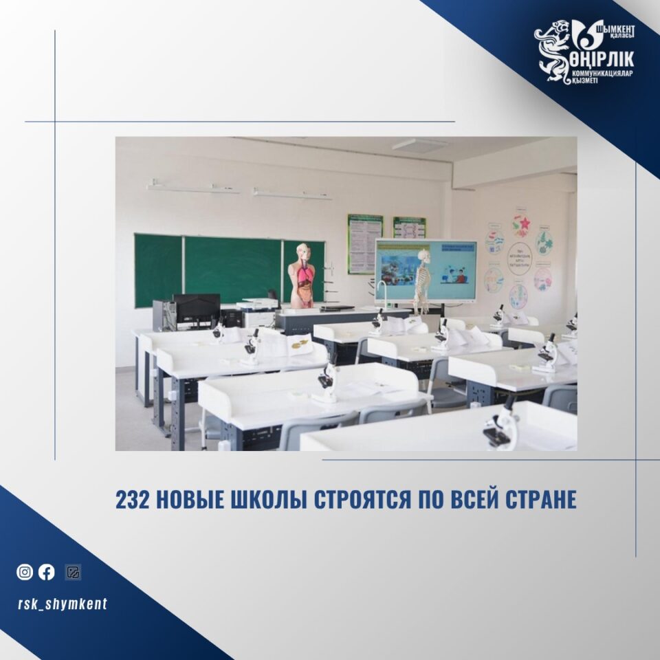 В регионах страны ведется строительство 232 новых школ, рассчитанных на 267 тысяч ученических мест. В текущем году уже введено в эксплуатацию 105 школ на 157 тысяч мест, из них 71 школа на 135 тысяч мест в рамках национального проекта «Келешек мектептері». Большая часть новых школ расположена в Туркестанской, Мангистауской, Алматинской, Актюбинской и Жамбылской областях.