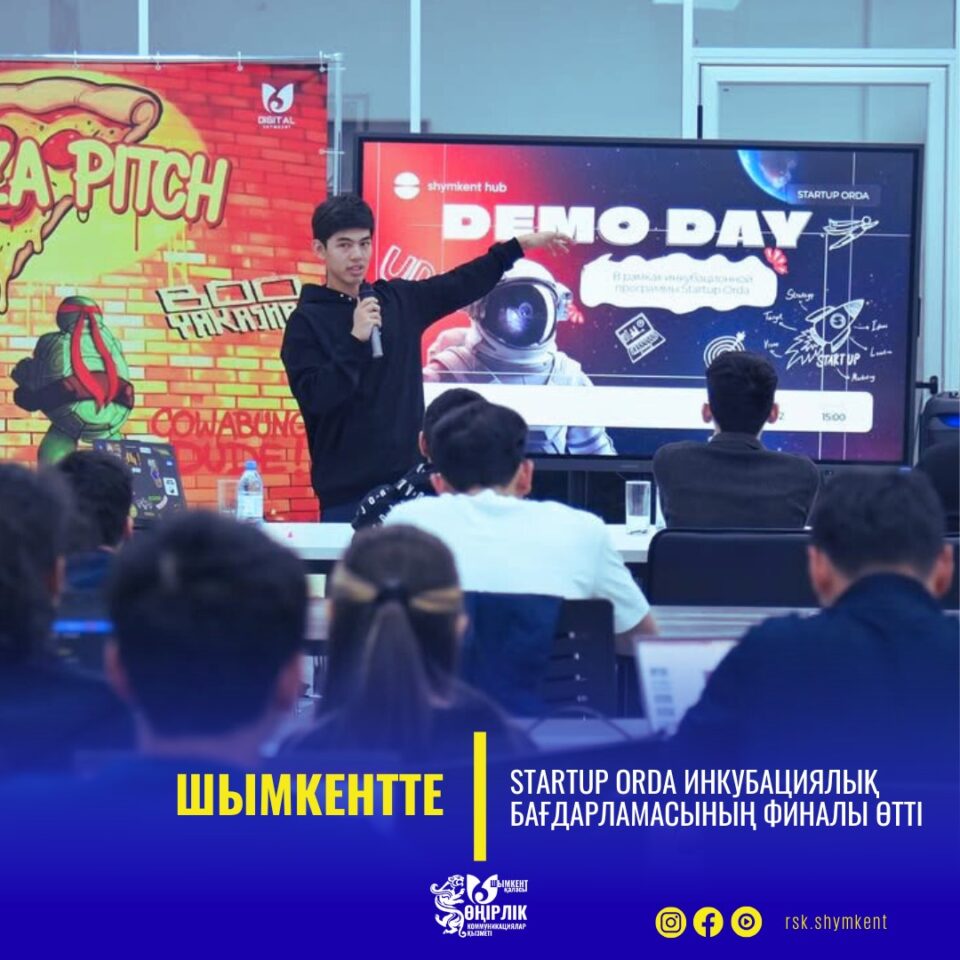 Шымкентте Startup Orda инкубациялық бағдарламасының Demo Day финалдық кезеңі өтіп, үздік стартап жобалар көпшілікке таныстырылды. Үш айға созылған білім беру, тәлімгерлік және өнімді әзірлеу кезеңінен кейін жас кәсіпкерлер өз идеяларын қорғай отырып, инвесторлар мен сарапшылар алдында кәсіби деңгейде жобаларын көрсетті.