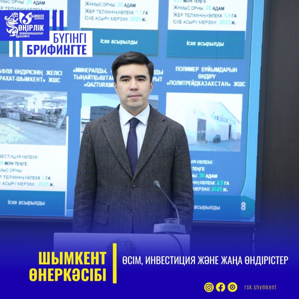ШЫМКЕНТ ӨНЕРКӘСІБІ: ӨСІМ, ИНВЕСТИЦИЯ ЖӘНЕ ЖАҢА ӨНДІРІСТЕР