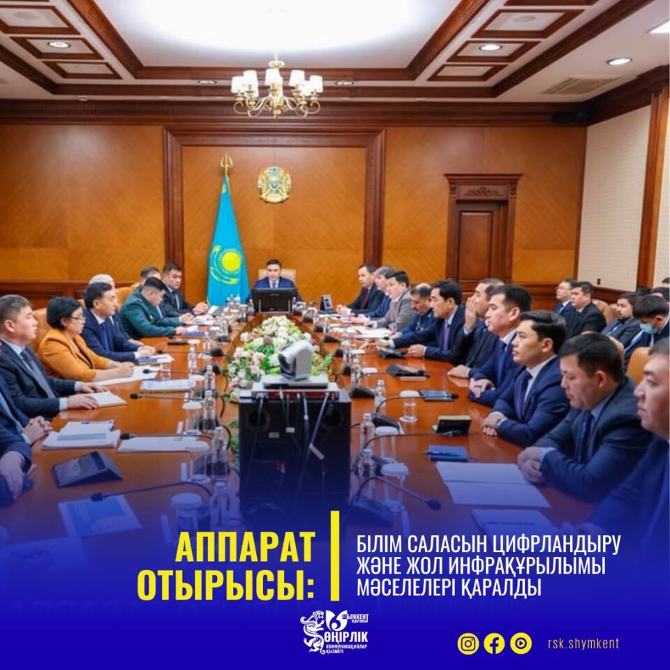 АППАРАТ ОТЫРЫСЫ: БІЛІМ САЛАСЫН ЦИФРЛАНДЫРУ ЖӘНЕ ЖОЛ ИНФРАҚҰРЫЛЫМЫ МӘСЕЛЕЛЕРІ ҚАРАЛДЫ