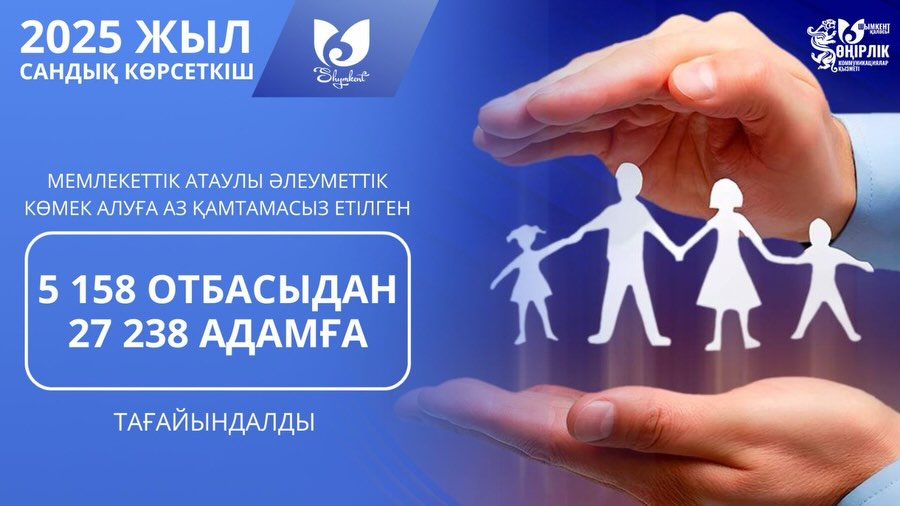 2025 жылы мемлекеттік атаулы әлеуметтік көмек 5 158 отбасыдан 27 238 адамға тағайындалды. Бұл өткен жылмен салыстырғанда атаулы әлеуметтік көмек алушылар санының 41,5 пайызға азайғанын көрсетеді.