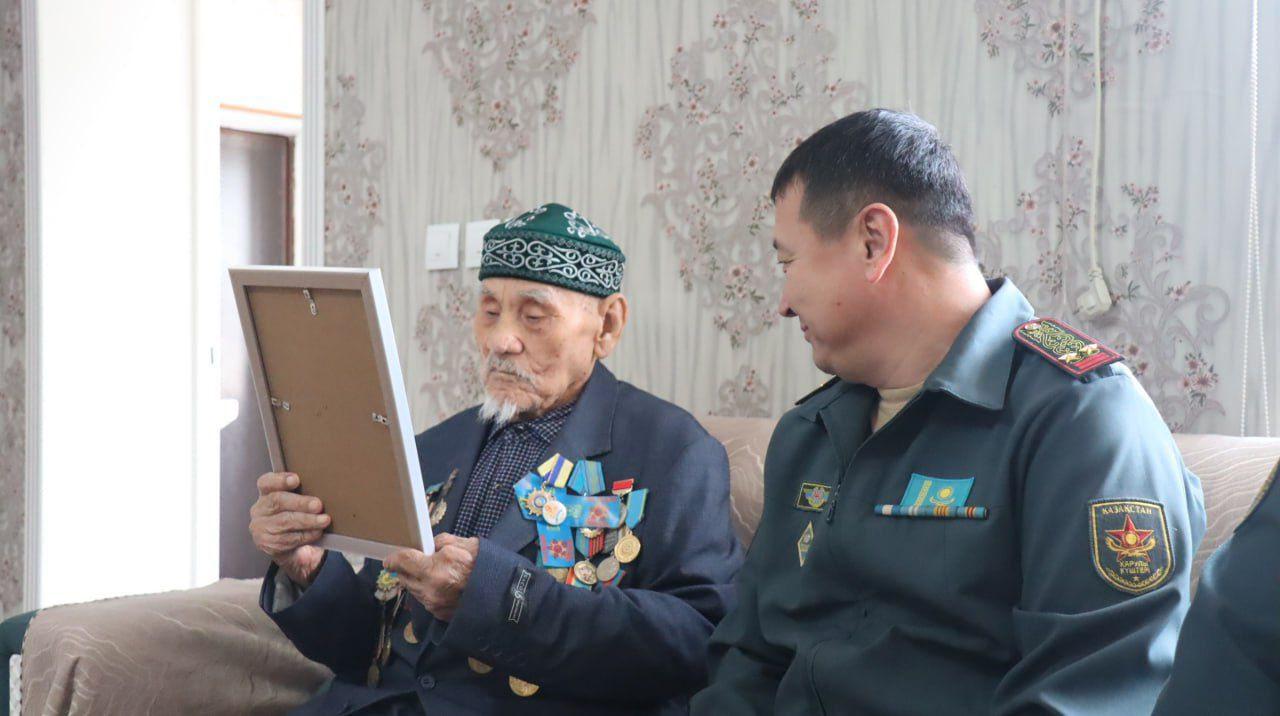 Түркістан облысында мереке қарсаңында әскери қызметшілер дәстүр бойынша Ұлы Отан соғысының ардагері Қалмен Мұратовтың шаңырағына барды.